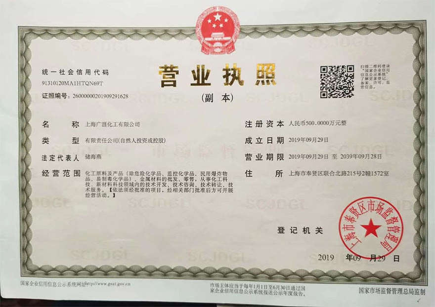 上海廣涯化工有限公司是一家集生產,研發,銷售于一體的化工企業!